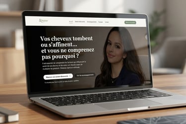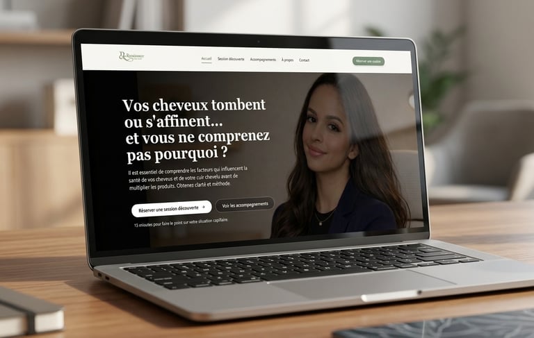 Site web conçu pour mettre en valeur une expertise capillaire et encourager la prise de rendez-vous.